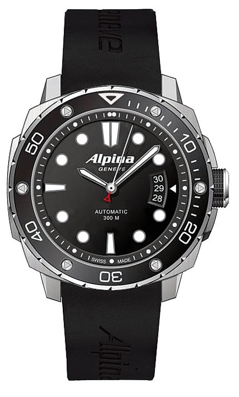 Model Extreme Diver marki Alpina ma ciekawą, poduszkowatą kopertę o wymiarach: 44 x 44 mm, jednostronnie obrotowy pierścień i kauczukowy pasek, który wyposażony jest w specjalny system umożliwiający przedłużenie paska tak, aby zegarek mógł być noszony na kombinezonie nurkowym. Stalowa koperta tego „poduszkowca” jest wodoszczelna do 30 atm. i ukrywa automatyczny kaliber SW 200 firmy Sellita, który widoczny jest przez przezroczysty dekiel.