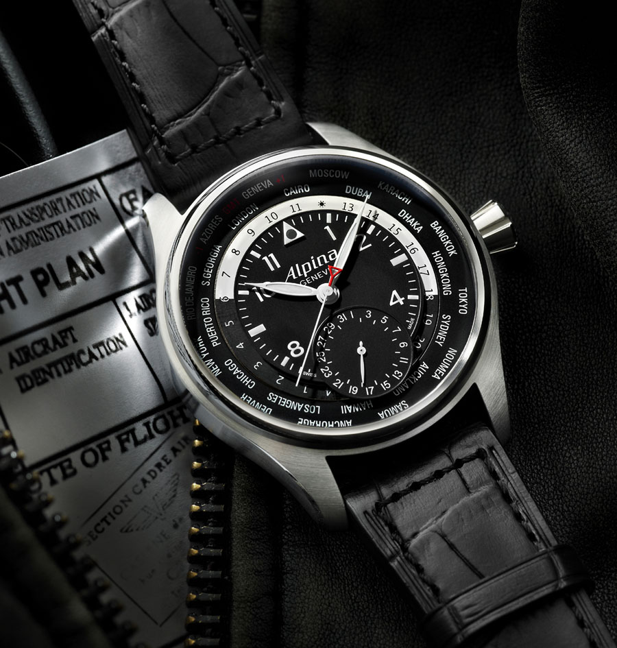 Jako napęd tego prostego w obsłudze worldtimera posłużył pochodzący z własnej manufaktury automatyczny kaliber Alpina 718, który opakowany jest w stalową kopertę o średnicy 44 mm. Całość uzupełnia pasek ze skóry krokodyla. Za tę podróż dookoła świata należy zapłacić ok. 2700 euro.