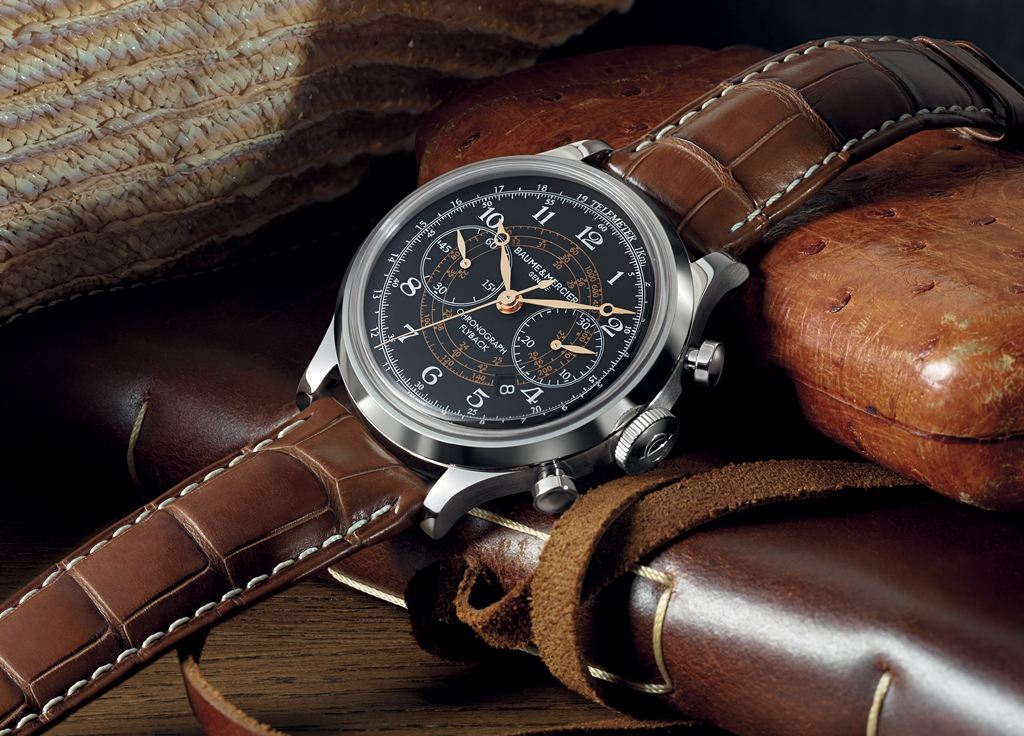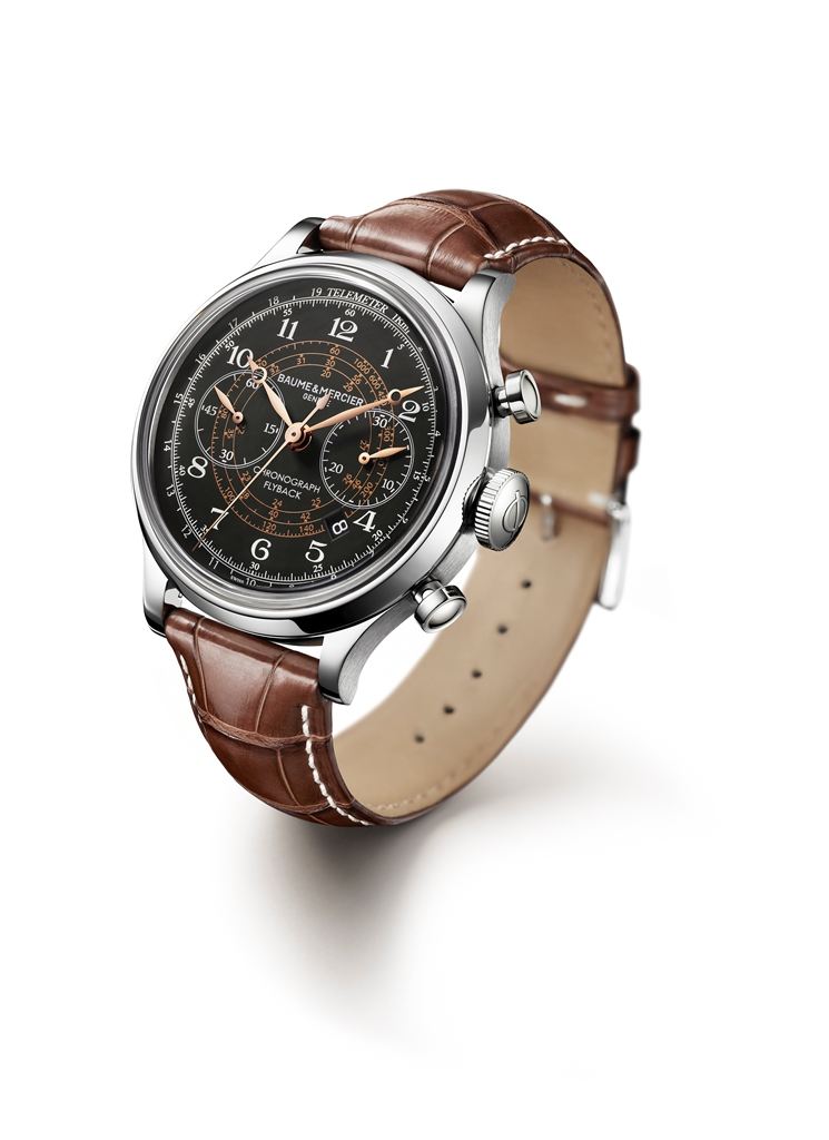 Firma Baume & Mercier zaprezentowała model Capeland, który swoją oficjalną premierę będzie miał podczas styczniowego SIHH w Genewie. Wzornictwo tej linii inspirowane jest wyglądem historycznego zegarka ze stoperem, produkowanego przez firmę około 1948 roku. Na czarnej, wypukłej tarczy, po której poruszają się pozłacane wskazówki (tzw. breguetowskie) dominują dwa, symetrycznie umieszczone liczniki: mały sekundnik na godzinie 9 i licznik 30-minutowy stopera na godzinie 3. Pod licznikiem 30-minutowym, między godziną 4 a 5 znajduje się datownik. Natomiast na pierścieniu otaczającym tarczę widnieje podziałka telemetryczna.