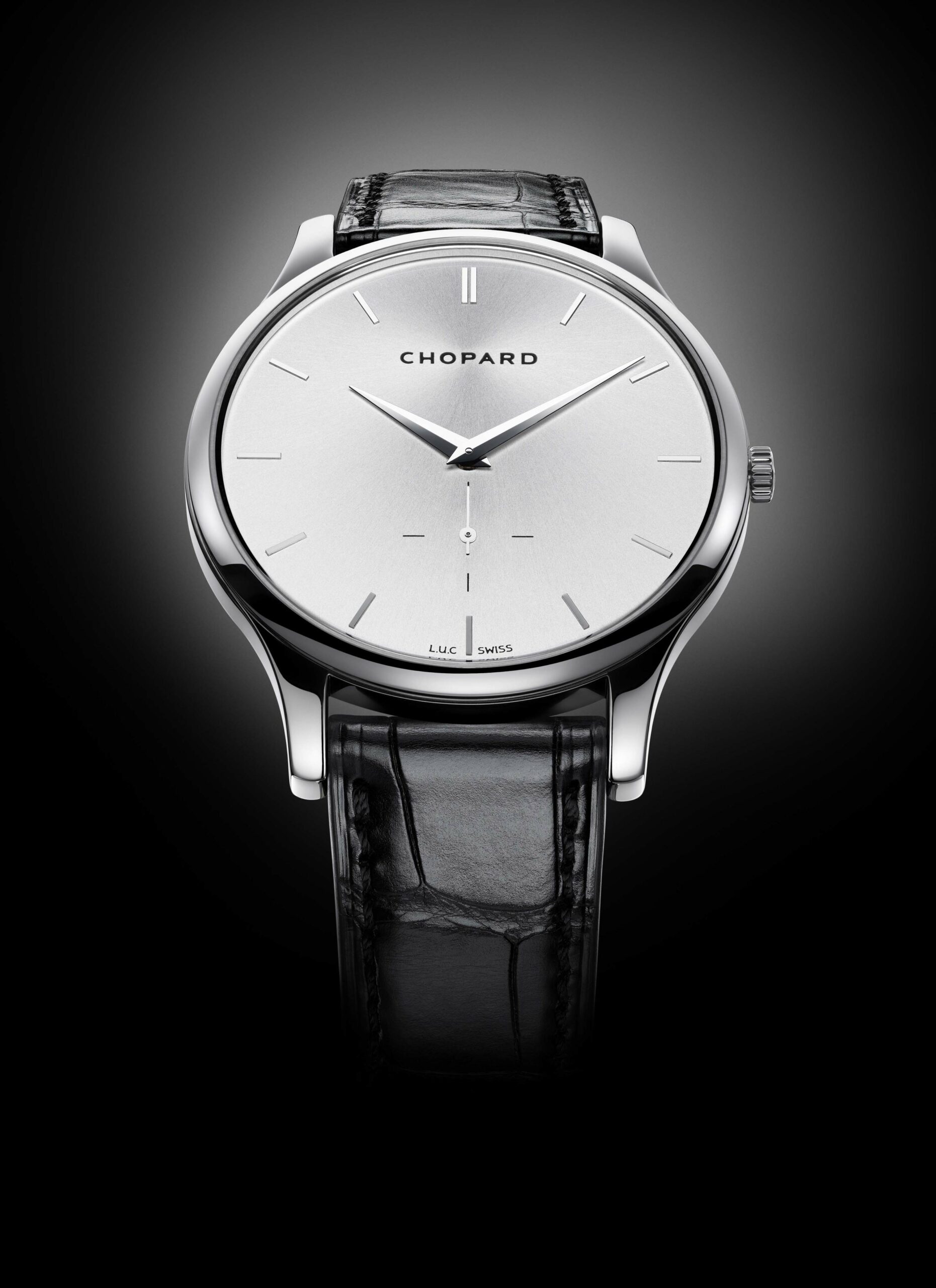 Można się dokładniej przyjrzeć tej konstrukcji obserwując pracę mechanizmu widocznego pod prezroczystym deklem z szafirowego szkła. Koperta modelu L.U.C XPS wykonana jest z białego złota, ma średnicę 39,50 mm i wysokość tylko 7,13 mm. Cena: 10 930 euro.