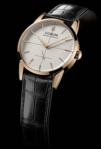 Najnowszy model firmy Corum nawiązuje do zegarka Grand Précis zaprezentowanego w 1957 roku, czyli dwa lata po założeniu firmy. Nowa wersja ma bardzo klasyczny wygląd: na tarczy widać tylko delikatnie zaznaczony, mały sekundnik na godzinie 6., nakładane indeksy godzinowe i pokryte masą świecącą delikatne wskazówki. Do współczesnych wymagań dostosowana została natomiast wielkość koperty, która ma średnicę o 2,5 mm większą i mierzy 38,5 mm.