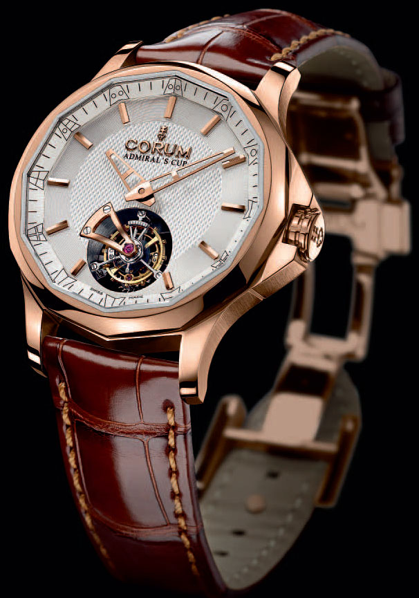 Model Admiral’s Cup Legend dostępny jest już w wersji z tourbillonem, a dokładnie tourbillonem i mikrowahnikem. Zastosowany w nim mechanizm powstał we współpracy z Fabrique du Temps, która od 2011 roku należy do firmy Louis Vuitton. W modelu marki Corum mechanizm ten pracuje w 42-milimetrowej kopercie wykonanej z różowego złota (dostępna jest też wersja ze stali i stali łączonej z różowym złotem). Tourbillon widoczny jest od strony tarczy na godzinie 6 i po stronie dekla. Admiral’s Cup Legend 42 Tourbillon Micro-Rotor kosztuje 36 600 euro (stal), 40 000 euro (stal i pierścień z różowego złota) lub 50 700 euro (różowe złoto).