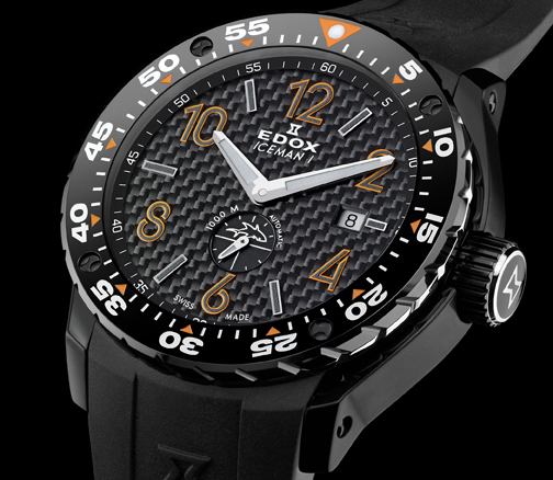 Zanim podczas targów Baselworld 2011 firma Edox zaprezentowała model Iceman I Limited Edition, zegarek towarzyszył płetwonurkowi, Christianowi Redlowi, który 12 lutego 2010 roku zszedł na głębokość61 mw jeziorze Weißensee w Karyntii. Tym samym Redl o5 metrówpobił rekord w nurkowaniu na wstrzymanym oddechu pod lodem. Nurkowanie trwało minutę i 51 sekund i odbywało się w temperaturze2 C. Jeżeli chodzi o zegarek, to mógłby zanurkować nawet na większą głębokość, ponieważ 43-milimetrowa stalowa koperta (pokryta czarną powłoką PVD) jest wodoszczelna do1000 m(dodatkowo ma zawór helowy). Model Iceman napędzany jest automatycznym kalibrem ETA 2895 z datownikiem i małym sekundnikiem. Cena: 1650 euro.