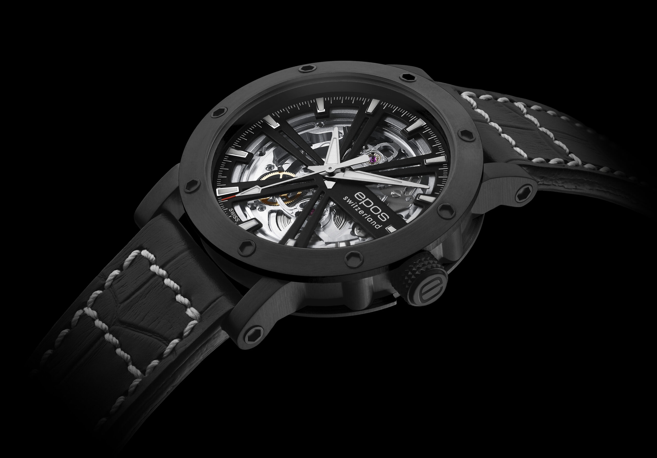 Bardziej nowoczesna, odświeżona wersja modelu z linii Sportive. Co oznacza skrót SK? SK, czyli szkieletowy mechanizm, w tym przypadku chodzi o automatyczny kaliber ETA 2824 ze wskazaniami godzin, minut i sekund. Zegarek opakowany jest w 42,5-milimetrową stalową kopertę, która pokryta została czarną powłoką PVD (wodoszczelność 5 atm.) i ma przezroczysty dekiel.