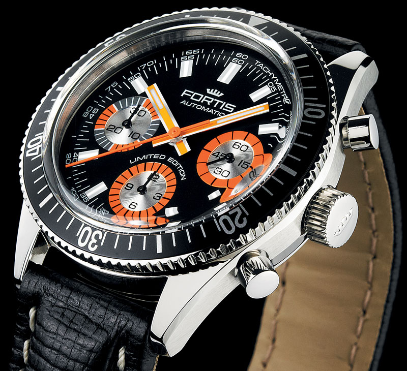 W tym roku firma Fortis obchodzi swoje 100-lecie i z tej okazji powstała limitowana reedycja modelu Marinemaster. Marinemaster po raz pierwszy pojawił się na rynku w 1940 roku i szybko stał się jednym z najbardziej popularnych zegarków tej marki. Z czasem jego wzornictwo wielokrotnie było modyfikowane i dopasowywane do tendencji obowiązujących w danym okresie. Wygląd najnowszej wersji, określanej jako Marinemaster Vintage, inspirowana jest wzornictwem modelu z lat 70. 40-milimetrowa, stalowa koperta ze sferycznym szkłem wykonanym z pleksi kryje automatyczny mechanizm ze stoperem i ma obrotowy pierścień. Marinemaster Vintage dostępny jest w serii 500 egzemplarzy i kosztuje ok. 3000 euro.