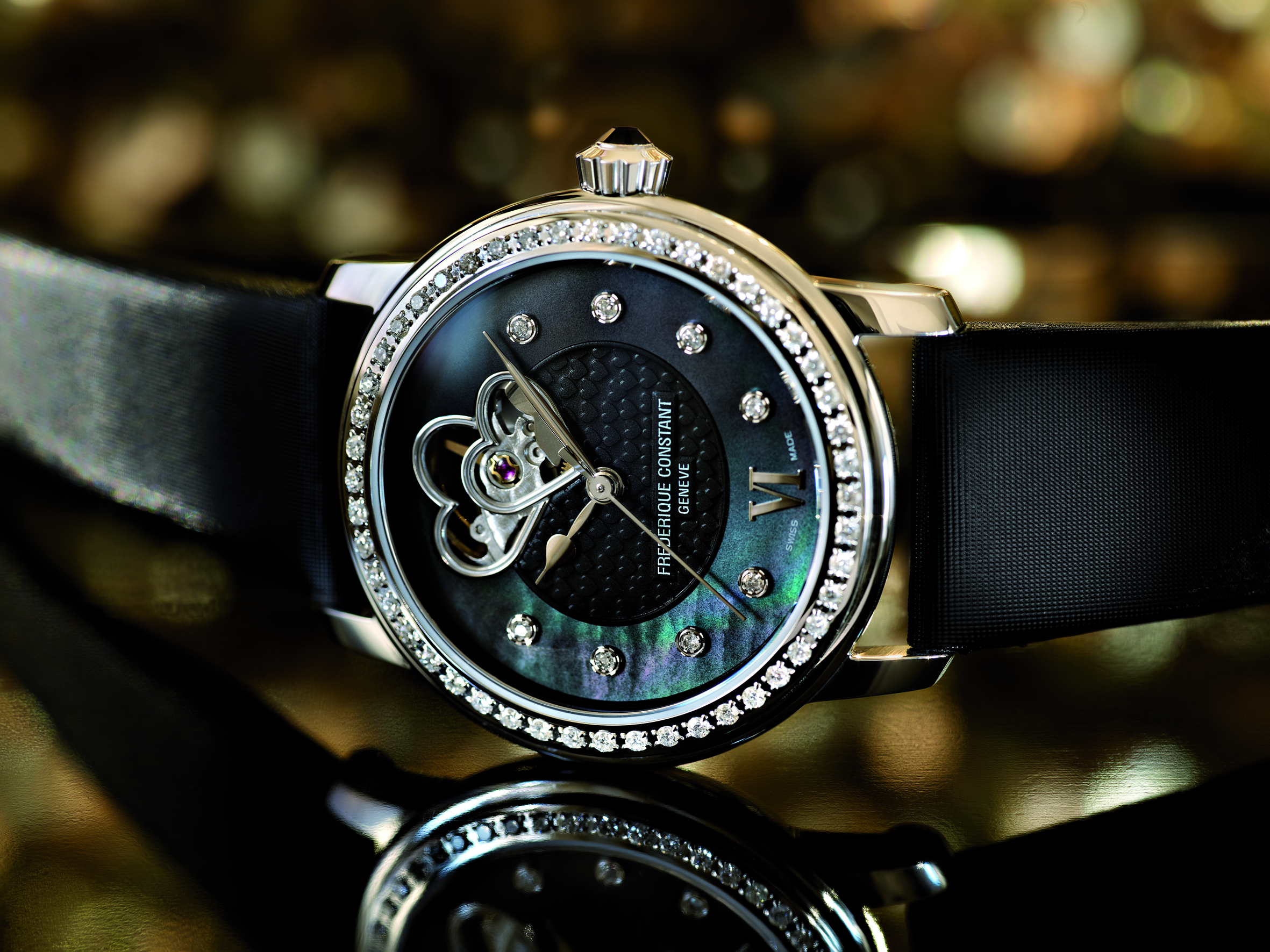 Firma Frédérique Constant zaprezentowała nowy, damski model. Nazywa się Black Beauty i jego znakiem rozpoznawczym, oprócz czarnej tarczy z masy perłowej, są dwa nachodzące na siebie serca. Oba tworzą oryginalne okno, przez które widać elementy automatycznego mechanizmu (kaliber FC-310 z 42-godzinną rezerwą chodu). Black Beauty opakowany jest w stalową kopertę o średnicy 34 mm. Czerń tarczy podkreślona została ośmioma diamentowymi indeksami godzinowymi oraz 48 brylantami (0,74 kr), którymi wysadzany jest pierścień. Całość uzupełnia czarny, satynowy pasek.