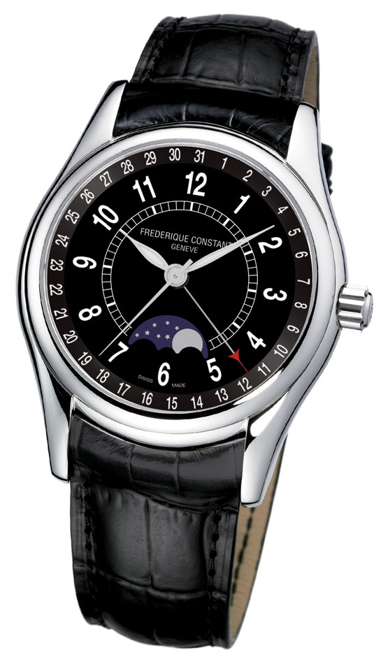 Zegarki z kolekcji Index marki Frédérique Constant mają skromny i bardzo klasyczny wygląd. Jednym z nich jest model Moon Timer Automatic z czarną tarczą, na której oprócz oryginalnego datownika obsługiwanego za pomocą wskazówki (zakończonej czerwoną strzałką) pojawia się zaznaczone na niebiesko wskazanie faz Księżyca. Aby poprawić czytelność wskazań na tarczy, wskazówka godzinowa oraz minutowa pokryte zostały masą świecącą. Wszystko opakowane jest w elegancką kopertę wykonaną z polerowanej stali. Przez przezroczysty dekiel widać pracujący automatyczny mechanizm, który powstał na podstawie kalibru firmy Sellita. Model dostępny jest ze skórzanym paskiem uszytym z cielęcej skóry lub ze stalową bransoletą. Ceny tego czasomierza zaczynają się od ok. 1500 euro.