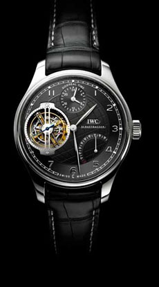 Prace nad nowym, niezwykłym dziełem zegarmistrzów z Schaffhausen trwały prawie tyle, ile Jowisz potrzebuje, aby okrążyć Słońce. Po ponad 10 latach projekt był gotowy i można go było zaprezentować. I oto pojawił się kosmiczny model na rękę, czyli Portugieser Sidérale Scafusia – najbardziej skomplikowany czasomierz w historii firmy IWC Schaffhausen. Portugieser Sidérale Scafusia to próba przełożenia kinematyki ciał niebieskich na mechanikę precyzyjną. W mierzącym 46 x 17,5 mm mikrokosmosie mieści się dzieło z pogranicza nauki, filozofii i zegarmistrzostwa. Portugieser Sidérale Scafusia fascynuje ilością i połączeniem różnych funkcji dodatkowych. Jedną z jego największych atrakcji jest tourbillon z wychwytem o stałej sile. To właśnie prace nad tym rozwiązaniem zajęły konstruktorom najwięcej czasu. Jako napęd wykorzystany został, stworzony specjalnie dla tego modelu ręcznie nakręcany kaliber 94900 z 96-godzinną rezerwą chodu. Co kryje się za stwierdzeniem: tourbillon z wychwytem o stałej sile? Mówiąc w skrócie: ta skomplikowana konstrukcja odpowiada za to, że balans pracuje ze stałą amplitudą (utrzymuje ją do 48 godzin po całkowitym nakręceniu), dzięki czemu zwiększa się dokładność chodu. Zegarek wskazuje czas słoneczny, gwiazdowy oraz godzinę wschodu i zachodu Słońca.