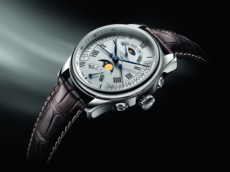 Flagowy model firmy Longines z powracającymi wskazaniami ma teraz dwa dodatkowe. Oprócz znanych już z wcześniejszej wersji wskazań godzin, minut, datownika, dnia tygodnia i czasu drugiej strefy, w swojej najnowszej odsłonie Master Collection Retrograde Moonphase ma dodatkowo wskazanie faz Księżyca oraz wskazanie dzień/noc. Powracające są wskazania czasu drugiej strefy, datownika, dnia tygodnia i małego sekundnika. Model napędzany jest automatycznym kalibrem A07 L31 wykonanym specjalnie dla Longines przez firmę ETA. Czasomierz dostępny jest w 41- lub 44-milimetrowej, stalowej kopercie i ma posrebrzaną lub czarną tarczę. Cena: ok. 2700 euro.