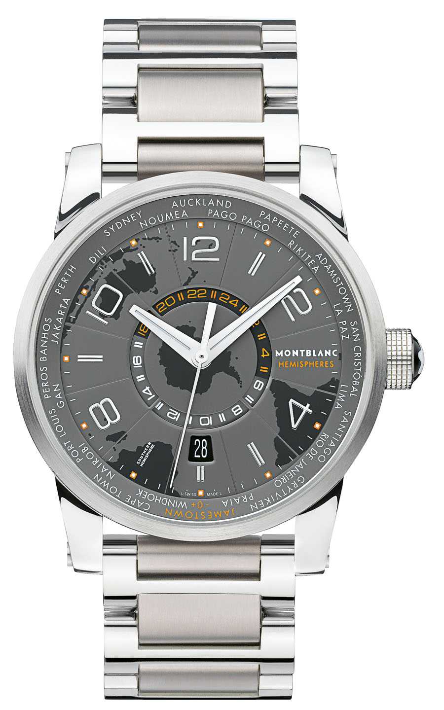 Firma Montblanc pokazała na SIHH dwa world timery: model TimeWalker World-Time Northern Hemisphere oraz TimeWalker World-Time Southern Hemisphere. Oba powstały z myślą o biznesmenach, którzy często podróżują i potrzebują zegarka wskazującego czas wszystkich stref, jednak wersja Northern Hemisphere ogranicza się do półkuli północnej, natomiast Southern Hemisphere do południowej. Każdy z zegarków ma więc pierścień z naniesionymi nazwami innych miast charakterystycznych dla danej strefy, co pozwala właścicielowi zegarka szybciej zorientować się w trakcie ustawiania czasu. Nieco łatwiejsza w obsłudze wydaje się wersja poświęcona półkuli północnej, ponieważ na jej tarczy kontynenty rozmieszczone są bardziej równomiernie. W modelu przeznaczonym dla osób podróżujących po krajach znajdujących się na półkuli południowej, w centralej części tarczy znajduje się bowiem Antarktyda. W tej wersji 24-godzinny dysk obraca się w kierunku przeciwnym do ruchu wskazówek zegara. Możliwe to było dzięki specjalnej modyfikacji automatycznego kalibru ETA 2893-1. Oba zegarki opakowane są w 42-milimetrowe stalowe koperty, z tym że wersja Northern Hemisphere ma pasek ze skóry cielęcej, natomiast Southern Hemisphere dostępny jest ze stalową bransoletą.