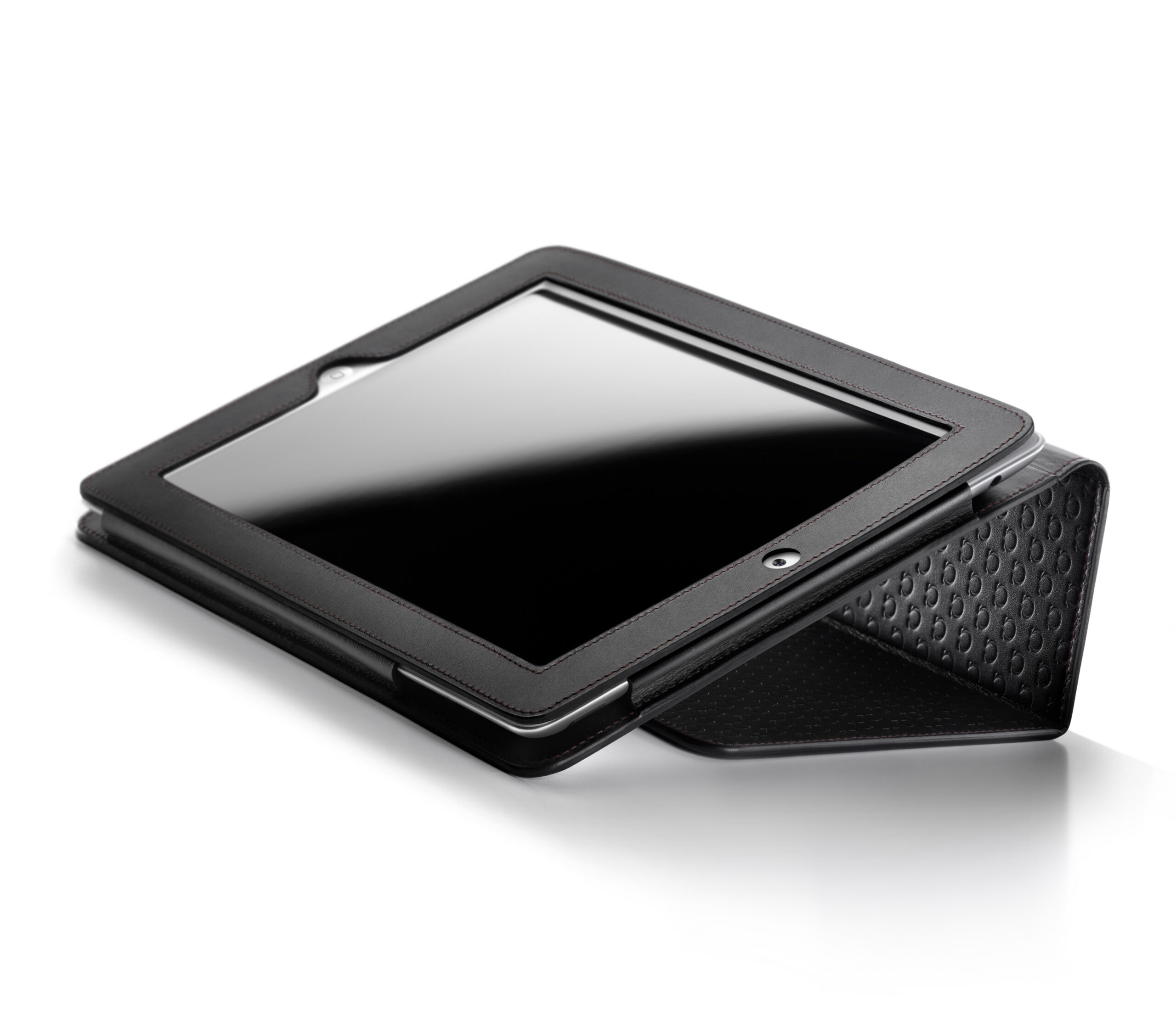 Jednym z ostatnich gadżetów sygnowanych logo słynnej marki z Biel jest specjalne, skórzane etui na iPada. Dlaczego specjalne? Po pierwsze, zostało ręcznie uszyte z cielęcej skóry, a po drugie, jego konstrukcja pozwala na korzystanie z tabletu w „klasycznej” pozycji lub pod kątem 45 stopni. W tylnej części pokrowca wykonany został otwór na kamerę, który ładnie komponuje się z ozdabiającym całość logotypem firmy Omega. Dostępność tego produktu jest dosyć ograniczona, ponieważ można go kupić tylko w butikach marki Omega.