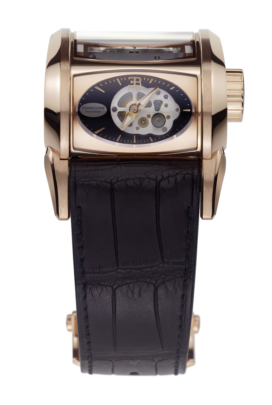 Nie jest to, co prawda, nowy model, a raczej nowa wersja niezwykłego modelu Bugatti Super Sport firmy Parmigiani, który swoim technicznym wyglądem nawiązuje do wzornictwa samochodu Veyron marki Bugatti. Za 245 000 euro otrzymamy zegarek opakowany w kopertę z różowego złota, w której ukryty jest stworzony we własnej manufakturze, ręcznie nakręcany kaliber PF372. Mechanizm składa się z 337 części i ma dwa bębny sprężyny gwarantujące mu 10-dniową rezerwę chodu. Ta wersja modelu Bugatti Super Sport pojawiła się w limitowanej serii obejmującej 30 egzemplarzy.