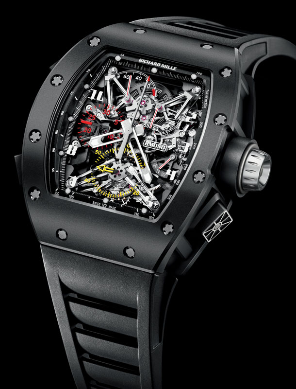 Znana z awangardowych rozwiązań marka Richard Mille wciąż zaskakuje. Oprócz nowej wersji modelu RM 050 Felipe Massa pojawia się także niezwykły zegarek: RM 056 Felipe Massa. Pierwszy z nich jest nową edycją bardzo skomplikowanego RM 008, w którym zmodyfikowano wzornictwo oraz zmieniono wygląd mostków. Oprócz charakterystycznych dla marki Richard Mille nowoczesnych materiałów, zegarek może pochwalić się różnymi funkcjami dodatkowymi: oprócz tourbillonu, ma podwójny stoper, wskazanie rezerwy chodu i momentu obrotowego, a także wskaźnik informujący o tym, w jakim trybie znajduje się aktualnie koronka: neutralnym, gotowym do nakręcania czy tym, w którym przestawiane są wskazówki. RM 050 oferowany jest w krótkiej, limitowanej serii 10 egzemplarzy. Jest bardzo lekki, ponieważ jego koperta wykonana została z mikroskopijnie małych rurek z włókna węglowego. Poza tym niezwykłym czasomierzem firma Richard Mille przygotowała jeszcze jedną niespodziankę, czyli model RM 056 Felipe Massa, którego koperta w całości wykonana została z szafirowego szkła. Jak podaje producent, jeden z dostawców oferujący tę oryginalną obudowę potrzebował aż 1000 godzin, aby ją wykonać. Dlatego nie dziwi fakt, że RM 056 dostępny jest tylko w pięciu egzemplarzach.
