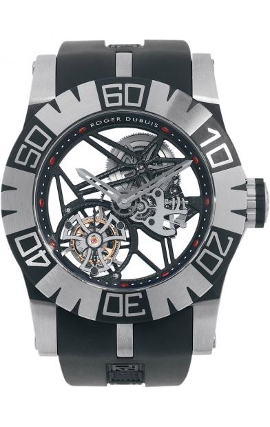 Szkieletowy model dla nurków z kolekcji Easy Diver ma co pokazać. Ręcznie nakręcany kaliber RD 02 SQ3 z latającym tourbillonem został umieszczony w 48-milimetrowej tytanowej kopercie i można go obserwować przez dwa szafirowe szkła. Ten piękny mechanizm ma, podobnie jak wszystkie kalibry pochodzące z manufaktury Roger Dubuis, Pieczęć Genewską. Nowy Easy Diver pochodzi z limitowanej serii obejmującej 280 egzemplarzy i, choć trudno w to uwierzyć, można z nim nurkować, ponieważ jego koperta ma wodoszczelność do 30 atm. Cena tego oryginalnego „nurka”: 103 000 euro.