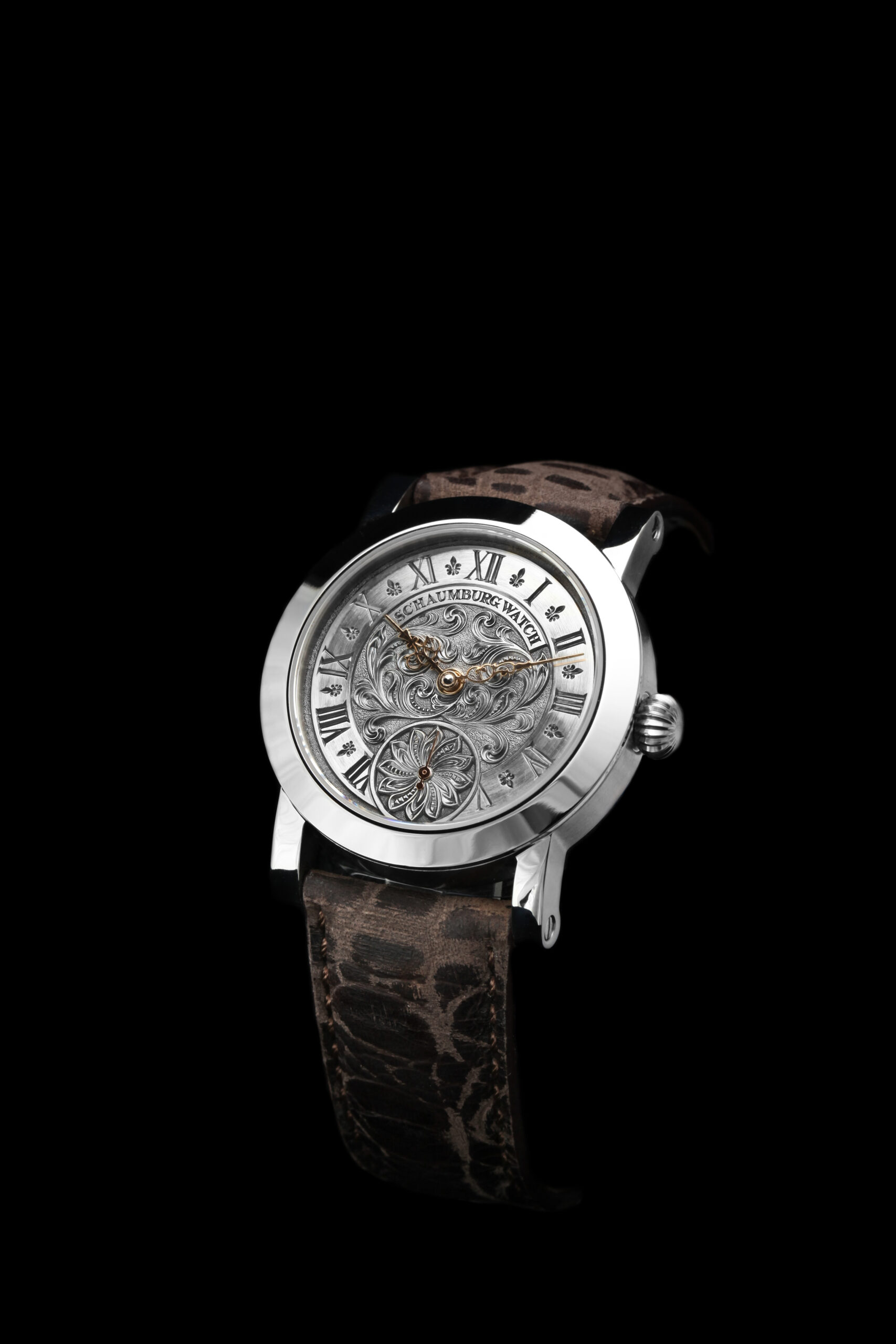 Każdy model niemieckiej marki Schaumburg Watch oznaczony jako Unique Hand Made pochodzi z limitowanej serii obejmującej tylko 10 egzemplarzy. W prezentowanej wersji tarcza wykonana została ręcznie ze srebra pr. 925. Ręcznie grawerowane są także indeksy godzinowe oraz ukryty w stalowej kopercie (średnica: 42 mm) ręcznie nakręcany kaliber SW-07, który pięknie prezentuje się od strony dekla. Za ten unikatowy czasomierz zapłacić trzeba 2800 euro.