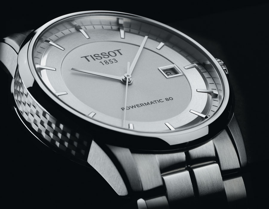Dzięki zastosowaniu nowego mechanizmu, Tissot Luxury Automatic może pochwalić się aż 80-godzinną rezerwą chodu. Co go napędza? Automatyczny kaliber Powermatic 80, który powstał we współpracy z firmą ETA. Mechanizm nie został oczywiście stworzony od zera: jako podstawę wykorzystano kaliber 2824, w którym wymieniony został wychwyt oraz bęben sprężyny. Ten długodystansowiec Tissota opakowany został w polerowaną i satynowaną stalową kopertę. Na białej tarczy, oprócz wskazań godzin, minut i sekund widoczny jest także datownik. Całość uzupełnia stalowa bransoleta, która podkreśla proste i eleganckie wzornictwo modelu Luxury Automatic. Zegarek dostępny jest w różnych wersjach, między innymi w odsłonie dwukolorowej lub tej z czarnym paskiem uszytym ze skóry cielęcej. Wersja pokazana na zdjęciu kosztuje ok. 660 euro.