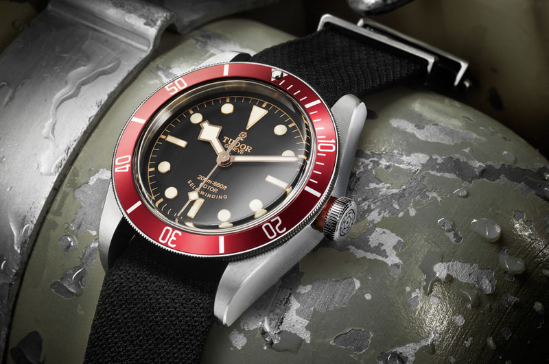 Najnowszy model Heritage Black Bay marki Tudor nawiązuje swoim wzornictwem do wyglądu zegarka dla nurków z 1954 roku, czyli okresu, kiedy powstawały pierwsze modele tego typu. Już wtedy firma stosowała lekko wypukłą tarczę, bordowy pierścień i specjalnie pogrubione wskazówki nazywane płatkami śniegu. Nowa wersja zegarka dla nurków jest większa od oryginału: koperta ma średnicę 41 mm, a w środku pracuje mechanizm dostarczony przez firmę ETA. Dzięki zastosowaniu zakręcanej koronki, model Heritage Black Bay jest wodoszczelny do 200 m. Można go kupić w wersji z postarzanym, skórzanym paskiem lub ze stalową bransoletą. Dodatkowo, do każdej z wersji oferowany jest nylonowy pasek.