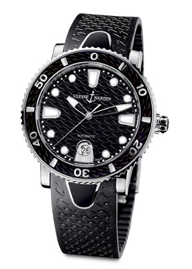 Firma Ulysse Nardin zaprezentowała kolejny damski model dla nurków. Tym razem Lady Diver ma dosyć skromny wygląd i utrzymany jest w modnej czerni. Stalowa koperta Divera ma średnicę 40 mm i ukrywa automatyczny kaliber UN-810, który powstał na podstawie kalibru ETA 2892. Na tarczy ozdobionej dekoracją typową dla tej linii widoczne są wskazania godzin, minut, sekund oraz datownika na godzinie 6. Całość uzupełnia kauczkowy pasek.
