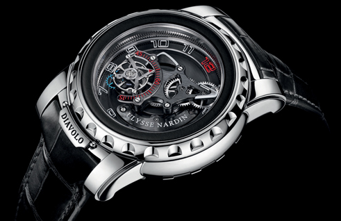 Firma Ulysse Nardin słynie z niekonwencjonalnych rozwiązań i lubi zaskakiwać nie tylko swoich miłośników. Zaprezentowany w 2001 roku model Freak należał do grupy najczęściej dyskutowanych zegarków w ostatnich kilkunastu latach. Odważne wzornictwo, a przede wszystkim brak tradycyjnej tarczy, koronki oraz wskazówek zaskoczył większość osób z związanych z branżą zegarmistrzowską. W tym roku firma Ulysse Nardin poszła o krok dalej i pokazała model o przewrotnej nazwie Freak Diavolo, która wywodzi się z przypominającego diabelskie rogi wskazania rezerwy chodu (znajduje się po stronie dekla). Rolę wskazówki godzinowej pełni bęben sprężyny, natomiast minutowej obracający się wokół centralnej osi mostek z regulatorem w postaci tourbillonu. Latający tourbillon pełni dodatkowo funkcję sekundnika. Klatka tourbillonu wyposażona jest w strzałkę, która wskazuje sekundy na przezroczystej, półkolistej podziałce. Ręcznie nakręcany mechanizm z 8-dniową rezerwą chodu ma wykonane z krzemu i nie wymagające smarowania koło wychwytowe oraz sprężynę włosową. Nakręca się go za pomocą pierścienia znajdującego się po stronie dekla. Natomiast pierścień okalający tarczę służy do ustawiania wskazań czasu.