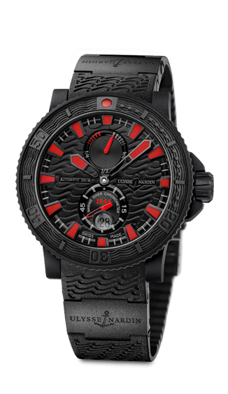 Czerń podkreślona mocnymi czerwonymi akcentami to znak rozpoznawczy modelu Black Sea, czyli nowego zegarka z linii Maxi Diver. Jego 45,8-milimetrowa, stalowa koperta pokryta została kauczukową powłoką, która ładnie komponuje się z kauczukowym paskiem. Jest wodoszczelna do 20 atm., co oznacza, że w przypadku Black Sea skojarzenia z wodą są jak najbardziej na miejscu. Jako napęd posłużył automatyczny kaliber UN 26, który powstał na bazie mechanizmu ETA. Na czarnej tarczy kolorem czerwonym zaznaczone zostały nie tylko wskazówki godzinowa i minutowa, ale także mały sekundnik na godzinie 6 i wskazanie rezerwy chodu na godzinie 12. Nad datownikiem znajdującym się na godzinie 6 znajduje się lupa poprawiająca czytelność tego wskazania. Cena: 7600 euro.