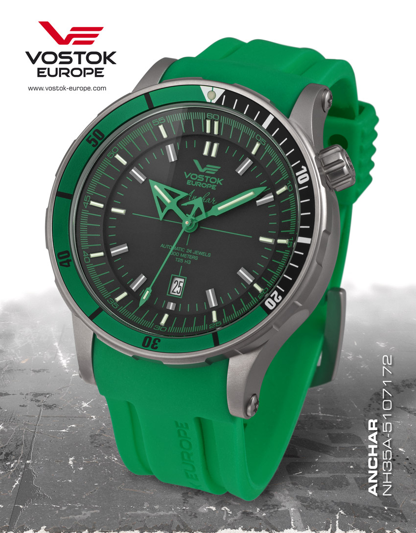 Modele Anchar zawdzięczają swoją nazwę najszybszej łodzi podwodnej, jaką kiedykolwiek zbudowano. Najnowszy czasomierz z tej linii to pierwszy zegarek tej marki z wodoszczelnością wynoszącą 30 atm. Zanim trafił do sprzedaży, testowany był pod wodą przez płetwonurków z NATO oraz archeologów z Greckiego Instytutu Podwodnej Archeologii. Czym się wyróżnia? Ma masywną, 48,5-milimetrową tytanową kopertę, w której pracuje automatyczny mechanizm NH35 ze wskazaniami godzin, minut, sekund i datownikiem. Pod mineralnym szkłem pokrytym powłoką antyrefleksyjną widoczna jest bardzo czytelna tarcza. Aby dodatkowo poprawić czytelność wskazań w ciemności, na indeksach godzinowych oraz wskazówkach: godzinowej i minutowej umieszczone zostały specjalne szklane rurki wypełnione trytem, które od środka powleczone są powłoką iluminacyjną (technologia zwana trigalight). Rurki mogą emitować światło nawet przez 10 lat, dzięki czemu tarcza świeci nawet w ekstremalnych warunkach. Model Anchar ma dwa paski: skórzany i silikonowy. Do ich wymiany służą dwa śrubokręty dostarczane razem z zegarkiem. Dostępne są trzy wersje kolorystyczne zegarka: z zielonymi, czerwonymi lub pomarańczowymi akcentami.