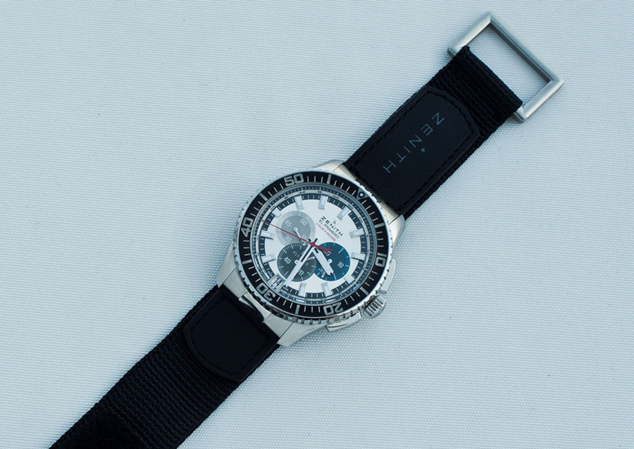 W niedzielę, 14 października, Felix Baumgartner skoczył z wysokości 39 km i jak donosily agencje z całego świata pobił kilka rekordów, przekraczając m.in. barierę dźwięku. Obserwując kolejne etapy całej misji niewiele osób zwróciło uwagę na jeden szczegół: na prawym nagdarstku, a właściwie na kombinezonie Felix miał przytwierdzony zegarek, a dokładnie Stratos El Primero Chronograph firmy Zenith. Dlatego nie tylko skoczek, ale także jego zegarek musiał przetrwać ektremalne warunki: ogromne wahania temperatur, wysokość, zmiany ciśnienia, prędkość naddźwiękową i silne wstrząsy. Prezentowane zdjęcie zegarka to pierwsza oficjalna fotografia czasomierza, który towarzyszył Baumgartner’owi. Zrobiona została niedługo po udanym skoku w Nowym Meksyku.